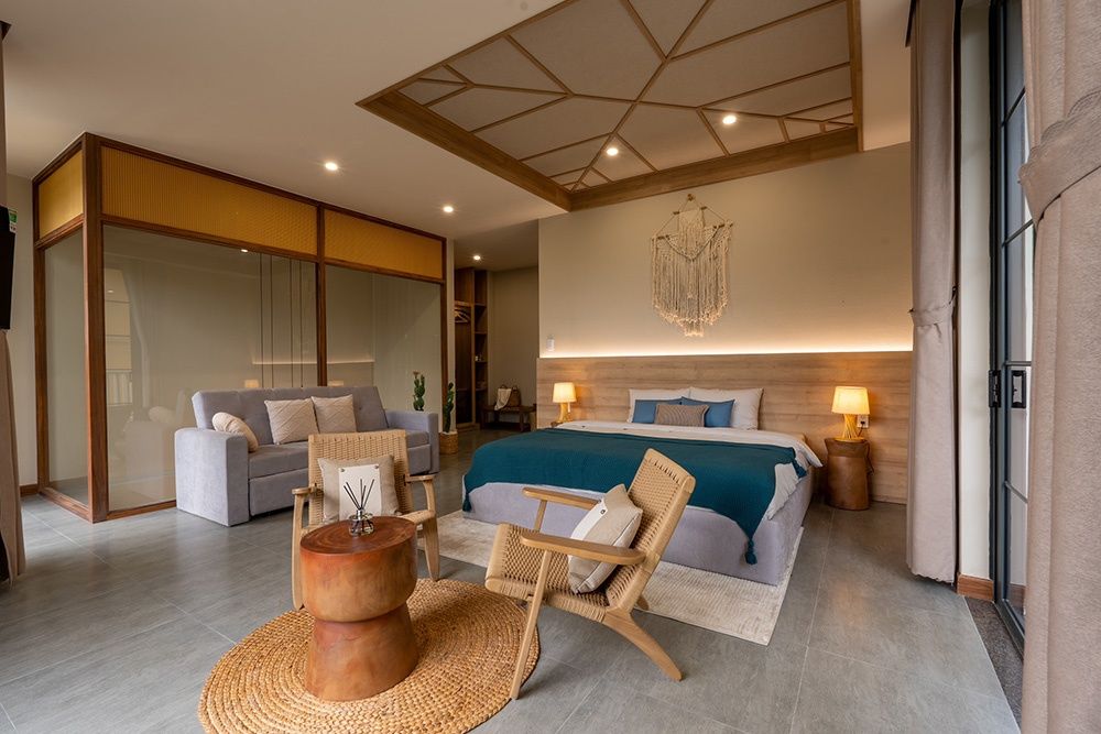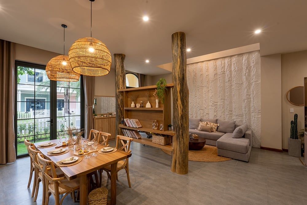 - Nội thất: Sử dụng gỗ tự nhiên có khả năng chống ẩm cao, mây, tre, đan cho đồ nội thất và trang trí, mang lại cảm giác nghỉ dưỡng (Resort Feel) đậm chất nhiệt đới.