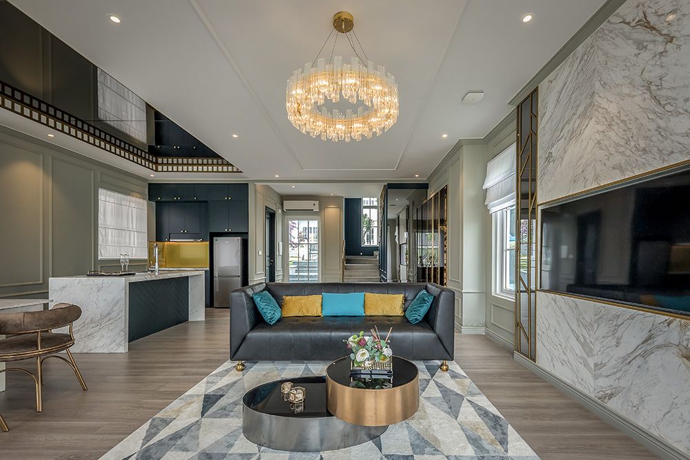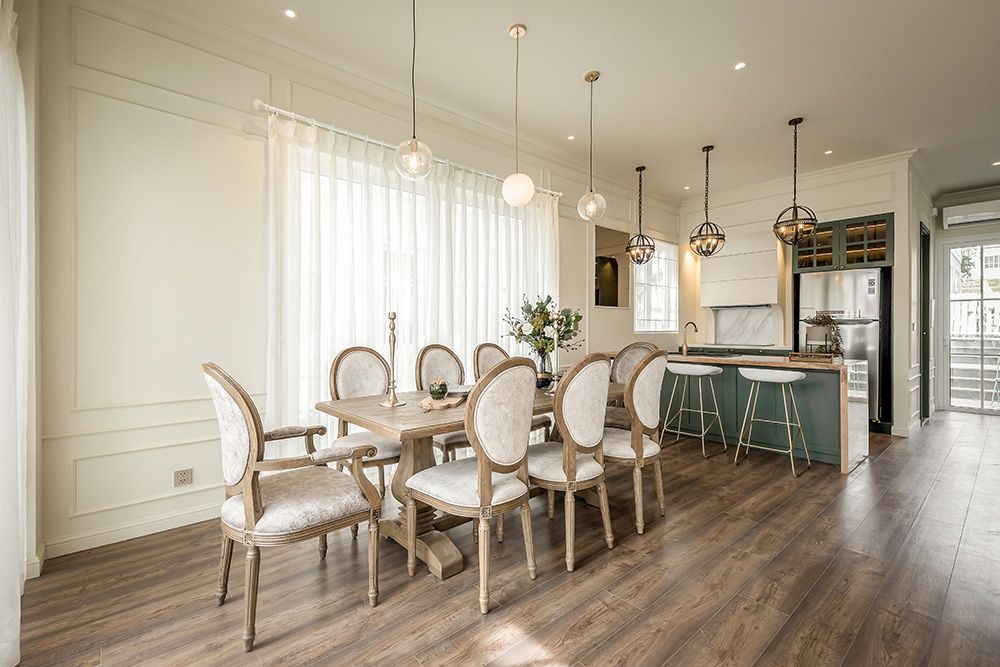 • Không gian mở: Kết nối phòng khách, bếp và phòng ăn để tạo cảm giác rộng rãi, thoáng đãng.