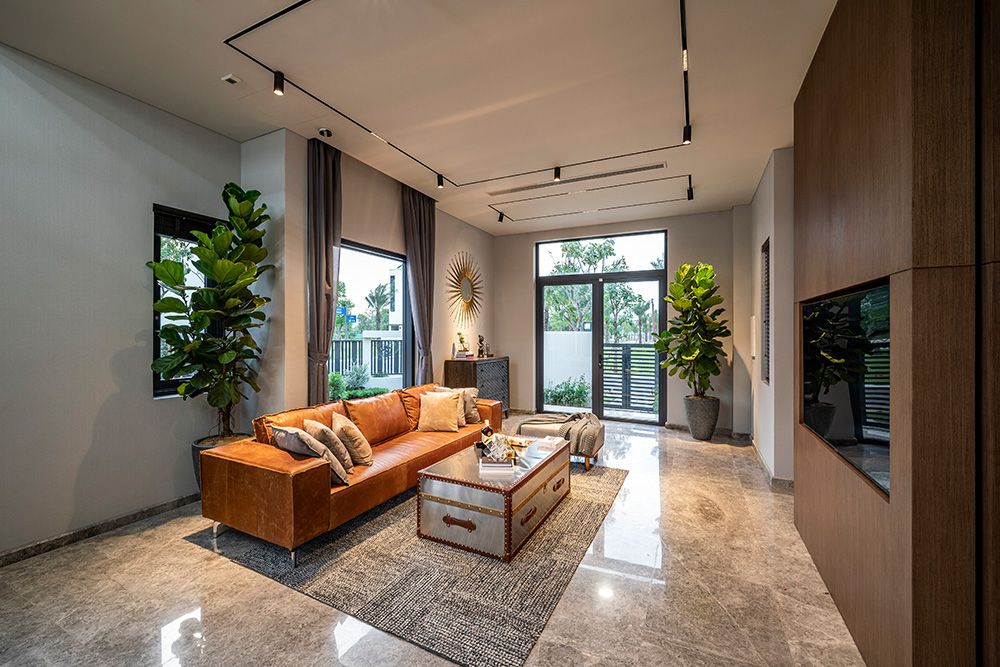• Ánh sáng nhân tạo: Sử dụng đèn downlight âm trần, đèn LED hắt khe, đèn cây... để tạo các lớp ánh sáng khác nhau, làm nổi bật đường nét kiến trúc và nội thất.