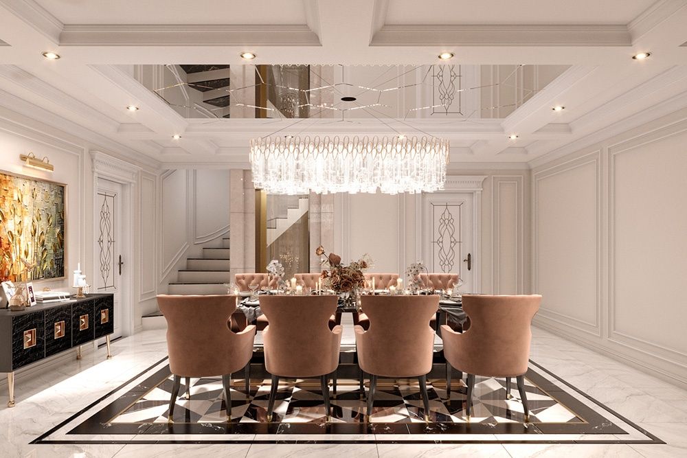 Trong thiết kế nội thất biệt thự tân cổ điển, tỷ lệ vàng không chỉ là một con số, mà là công cụ tạo ra sự hài hòa thị giác một cách vô thức.
