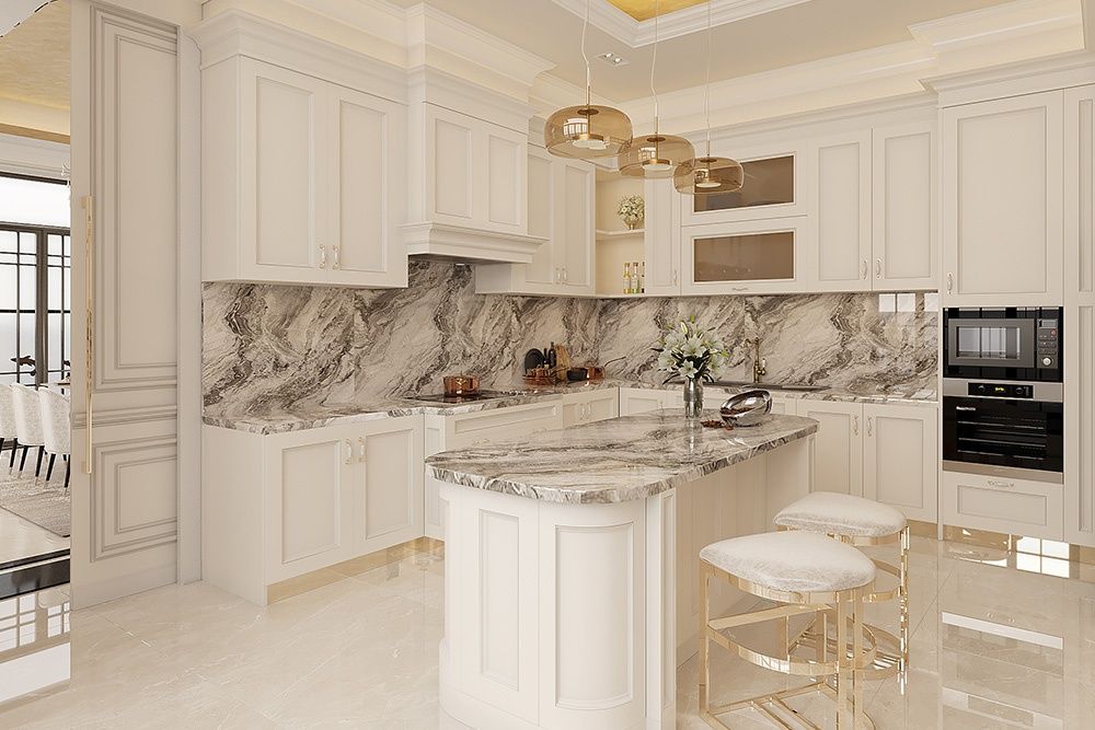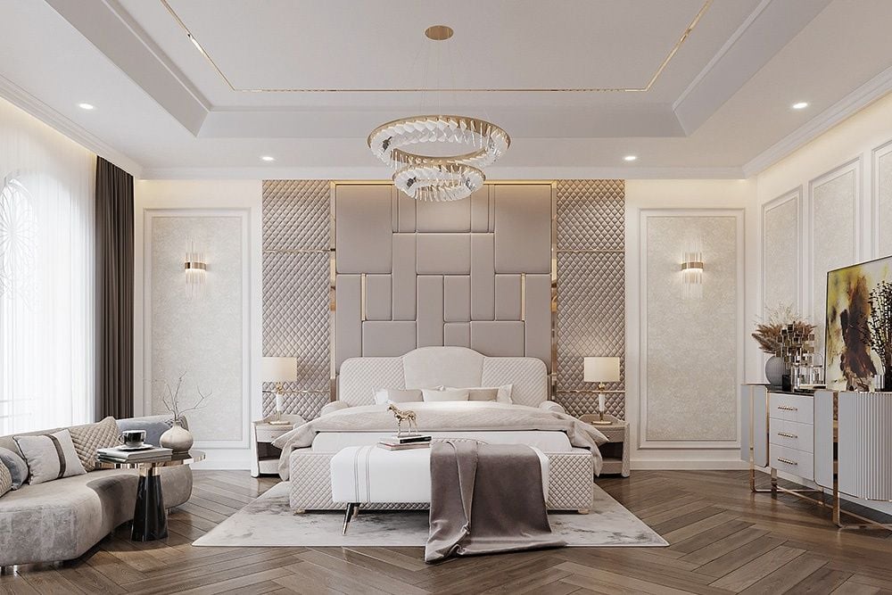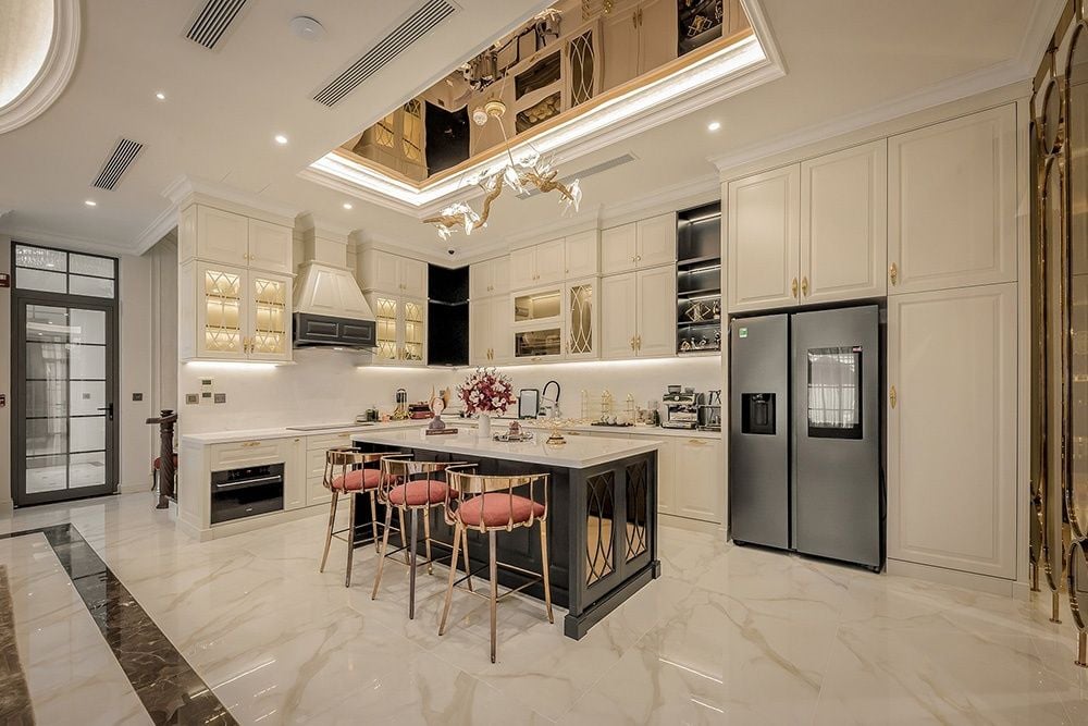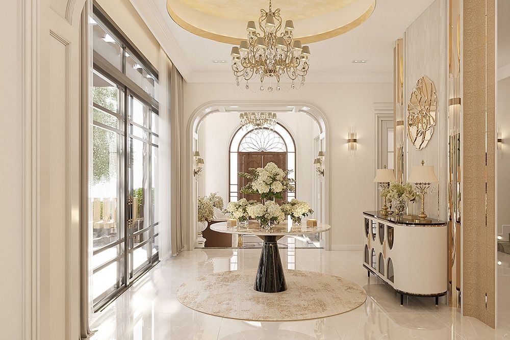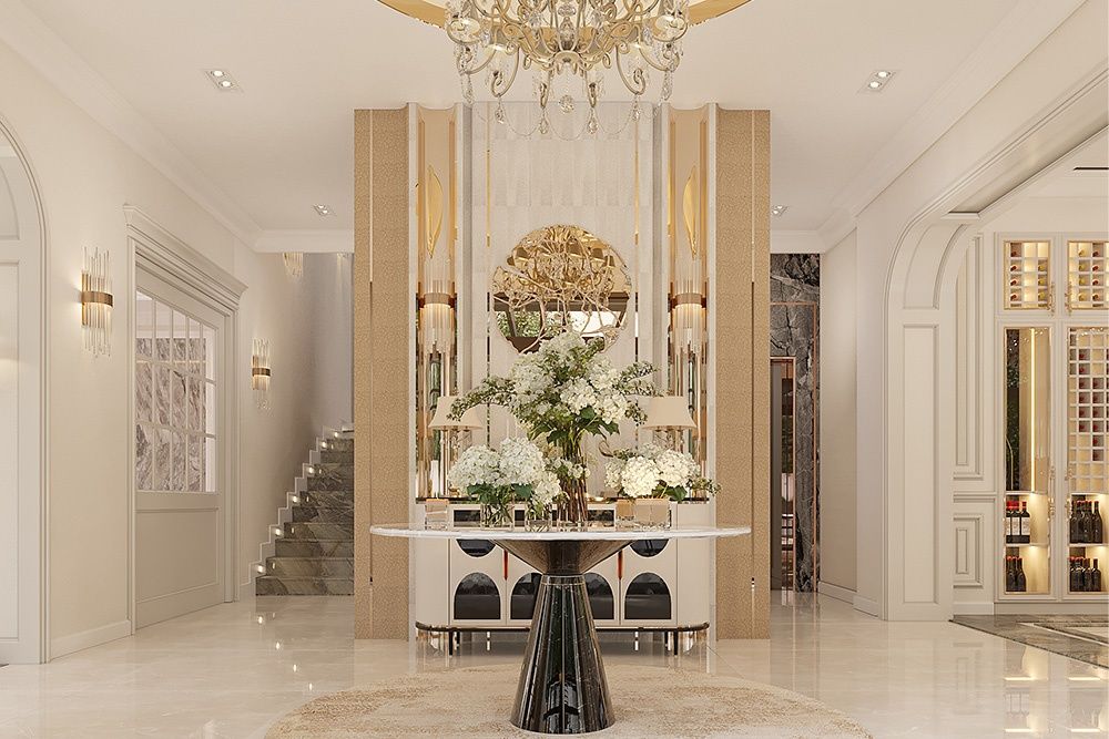 Thiết kế nội thất biệt thự tân cổ điển hiện đại lược bỏ phào chỉ rườm rà, tập trung vào đường nét tối giản để tránh lỗi thời và nặng nề | Nguồn ảnh: Galaxycons