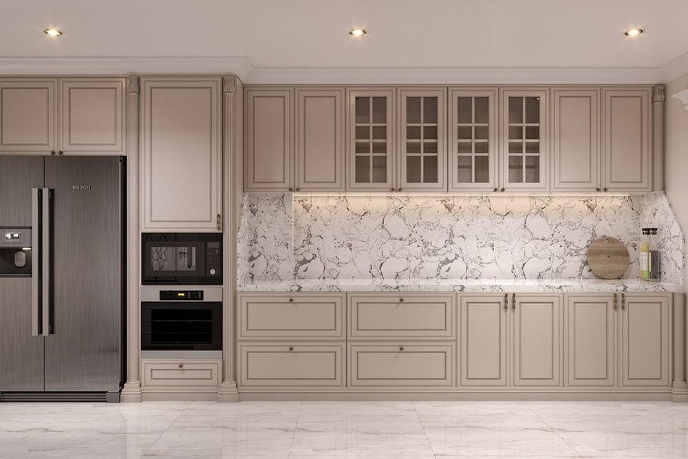 - Nội Thất Đa Năng: Thay vì các món đồ chỉ để trang trí, nội thất Tân Cổ Điển ngày nay được thiết kế để tối ưu hóa công năng. Tủ kệ âm tường, giường có ngăn kéo lớn, hay bàn ăn mở rộng... đều được tích hợp khéo léo để tiết kiệm không gian.