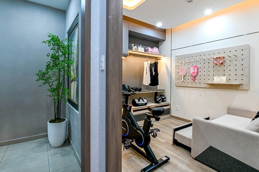Nội thất gỗ và đèn LED được sử dụng khéo léo để tăng thông thoáng và ấm cúng. Phòng ngủ Master được thi công tủ quần áo kịch trần liền mạch, trong khi phòng ngủ phụ được cá nhân hóa thành phòng làm việc (kệ sách nội thất gỗ tích hợp) hoặc phòng trẻ em (giường bục, trang trí chủ đề), đảm bảo mọi không gian đều được tối ưu lưu trữ và sử dụng vật liệu cao cấp mà vẫn giữ được tinh thần thư giãn của phong cách Nhật Bản.